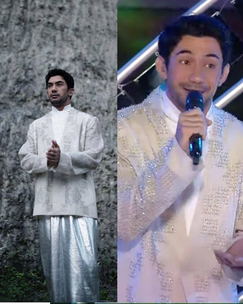 Gayanya tidak kalah menarik, busananya ditata oleh desainer ternama Indonesia, Hagai Pakan. Reza menggunakan atasan jas, dengan dalaman berkerah tinggi, yang menambah gaya. Ditutup dengan bawahan celana longgar.