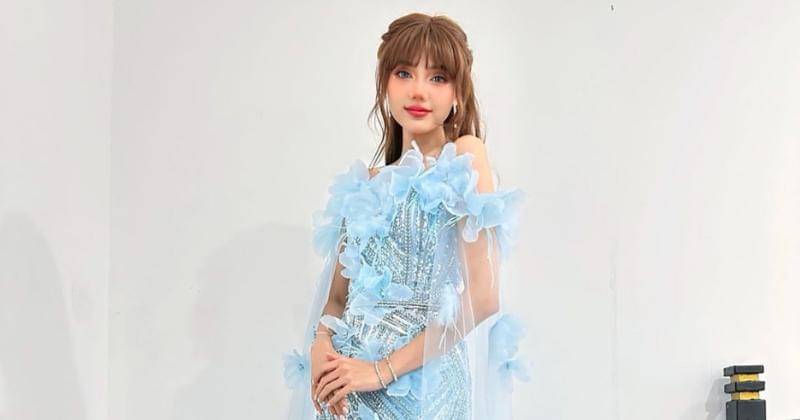 Rambutnya ditata sedemikian rupa membuatnya terlihat seperti putri dongeng. Half-up do, terlihat sebagai pilihan yang tepat untuk tampil anggun. Tampilan yang berbeda dari Rina Nose kali ini banyak mengejutkan netizen, lho!