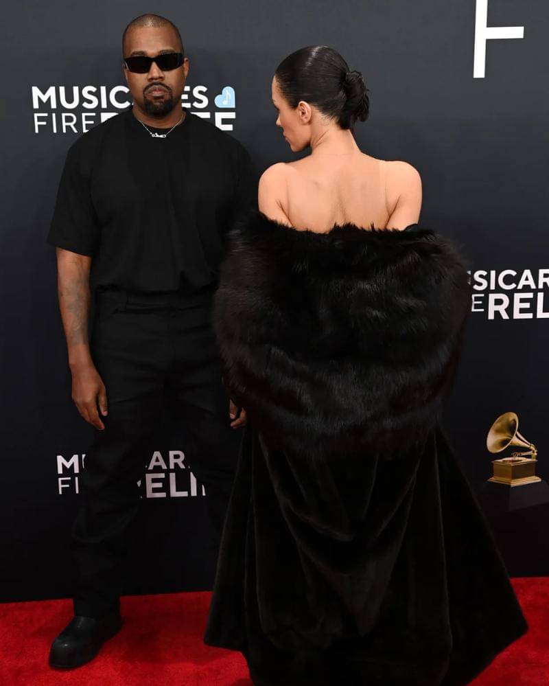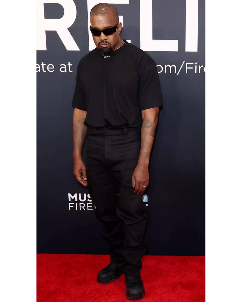 Berbanding terbalik dengan penampilan sang istri yang mengejutkan. Kanye mendatangi Crypto.com Arena, Los Angeles, dan berpose di red carpet dengan mengenakan busana yang sederhana.
