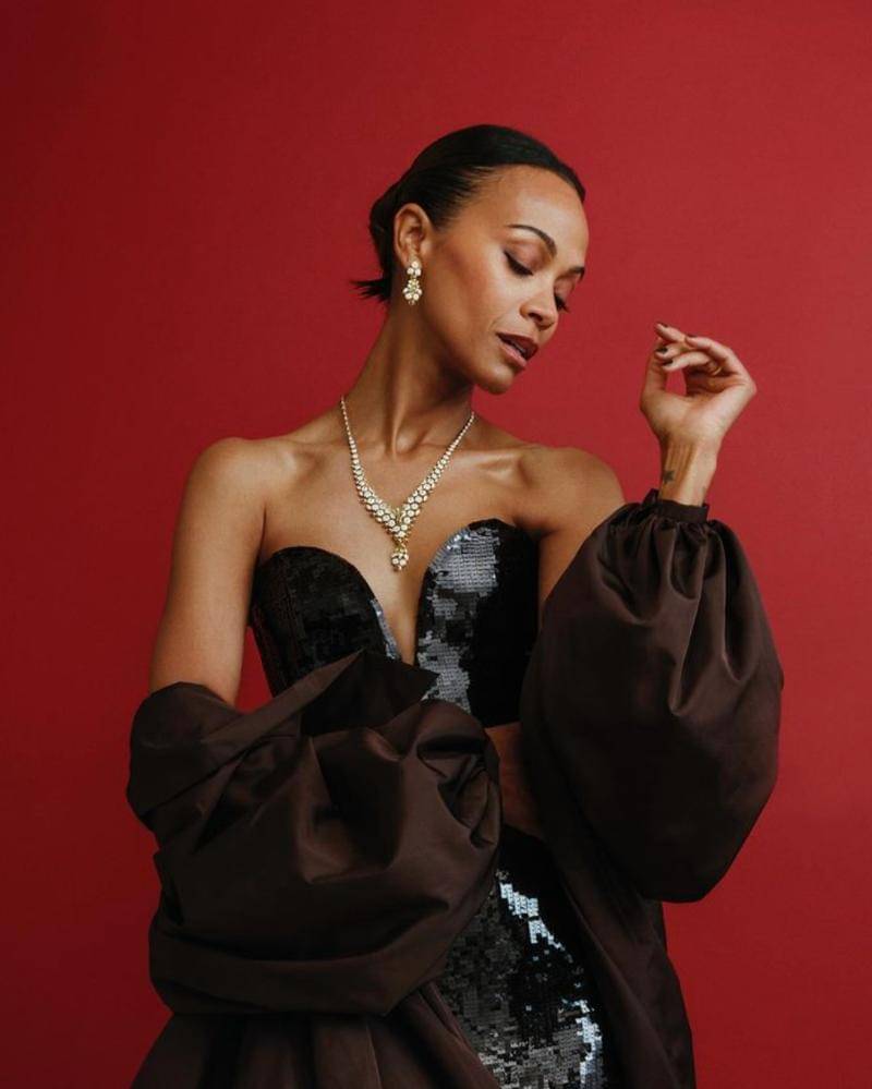 Zoe Saldana dan penata gayanya, Petra Flannery, berkolaborasi dengan Cartier untuk memilih perhiasan yang sempurna untuk penampilannya di Golden Globes kali ini. Mereka memilih kalung berlian dan anting-anting yang memukau dari koleksi perhiasan mewah baru Cartier "Nature Sauvage".