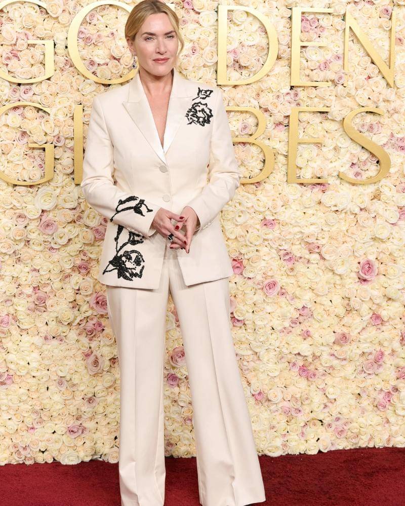 Kate Winslet tampil memukau di Golden Globes ke-82, memancarkan keanggunan dalam balutan setelan Erdem putih yang dibuat khusus. Penampilan berbeda tersebut, menampilkan jas wol sutra berwarna krem dan celana panjang yang serasi, memamerkan gaya Winslet yang percaya diri.