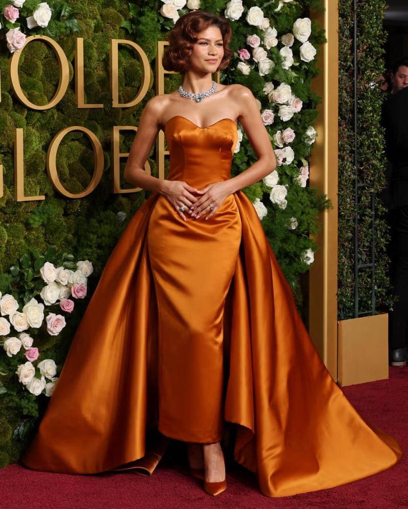 Hal ini ditunjukkan oleh Zendaya yang tampil memukau di Golden Globes, memamerkan perannya sebagai duta Louis Vuitton dalam gaun satin tembaga yang menawan. Gaun tersebut, dipilih oleh stylist langganannya, Law Roach, yang berhasil menampilkan siluet yang menawan dan dada yang dramatis, menonjolkan bentuk tubuh Zendaya dengan sangat baik.