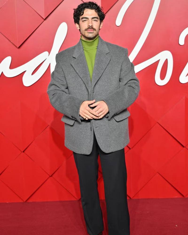 Mementingkan kenyaman, Joe Jonas tampil dengan busana yang membuat dirinya terlihat hangat sepanjang malam. Ia mengenakan turtleneck berwarna hijau terang, yang dipadukan dengan jas abu-abu, berbentuk kotak.