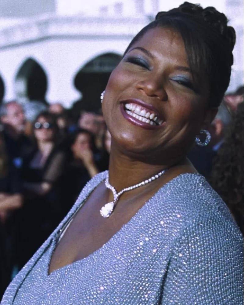 Queen Latifah tampil mengesankan di Oscars tahun 2000, mengenakan gaun lavender dan perhiasan Harry Winston yang melimpah. Perhiasan berupa kalung berlian berbentuk pir dengan anting-anting hoops berkilau membuat gayanya semakin menonjol.