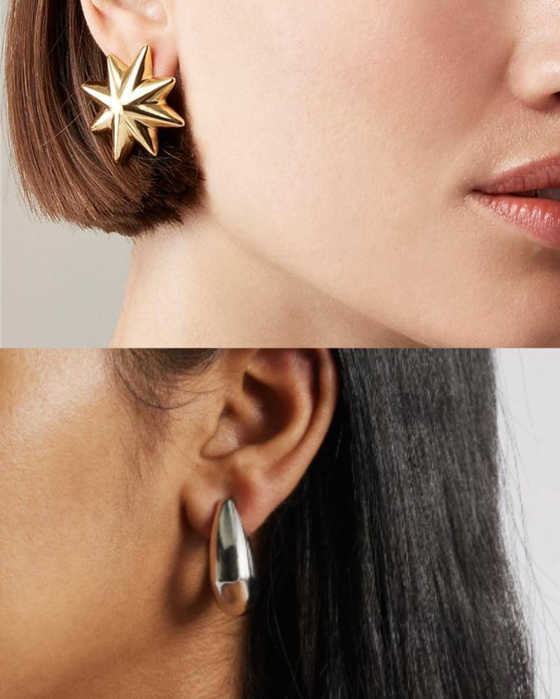 Agar nyaman dipakai sepanjang hari, pilih versi ringan dari anting-anting besar ini. Tata anting-anting yang menonjol ini dengan gaya rambut yang ramping atau disanggul untuk menunjukkannya dengan maksimal.