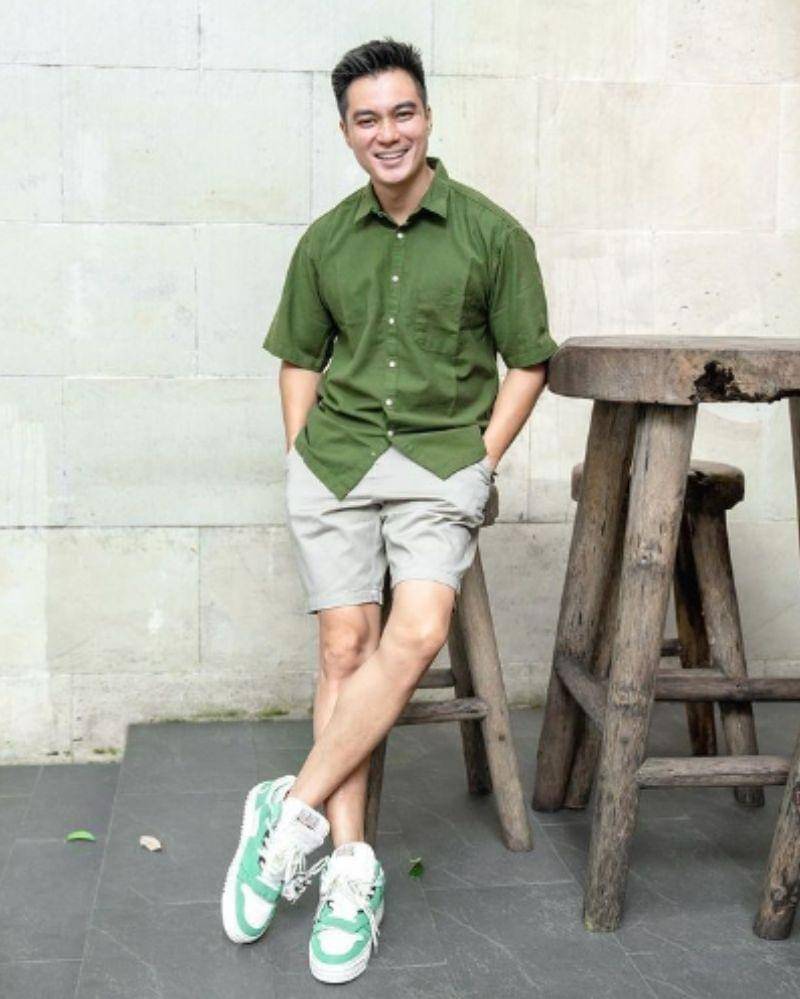 Baim Wong sering kali memilih celana chino pendek sebagai bagian dari gaya kasualnya. Pada salah satu potret, ia memadukan celana tersebut dengan kemeja hijau army yang menambah kesan maskulin dan keren.