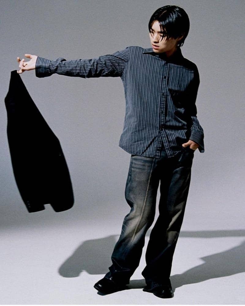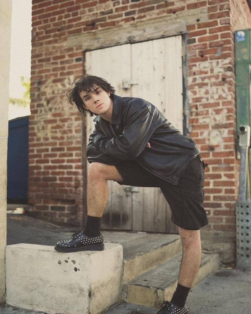 Dalam keseharian, ia tampil minimalis dengan memilih warna yang monokrom. Seperti yang satu ini, ia mengenakan jaket kulit berwarna hitam dan celana pendek berwarna senada. Sepatunya pun mendukung gayanya.