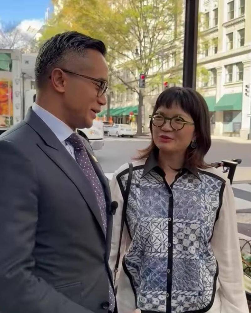 Batik blazer yang ia kenakan mencerminkan keanggunan serta keunikan, yang menjadi ciri khas dari karya Oemah Etnik, sekaligus menegaskan komitmennya terhadap pengembangan industri fashion dalam negeri.