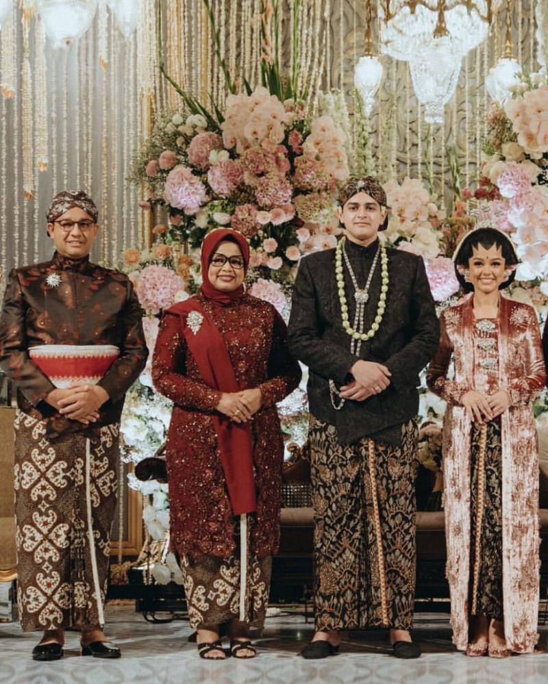 Sementara, untuk bawahan kebaya, Fery mengenakan rok batik berwarna cokelat dengan motif truntum godeg. Motif tersebut memiliki arti curahan kasih sayang dalam bentuk doa orangtua untuk mengiringi mempelai menjadi pemimpin kehidupan.