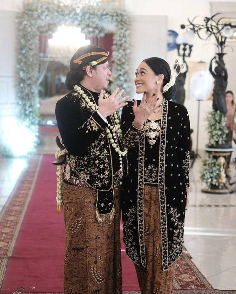 Keduanya terlihat mengenakan pakaian adat Jawa. Nadia mengenakan batik putih bersih dengan tudung kepala berwarna senada. Sedangkan Kamar mengenakan beskap putih dan kain batik kembaran dengan sang istri.