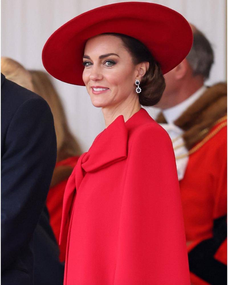 Namun, berbeda dengan foto yang baru-baru ini keluar, mengenai tampilan Kate saat menyambut Presiden dan Ibu Negara Korea Selatan ke London, untuk kunjungan resmi kenegaraan. Kate tetap mempertahankan kebiasaannya untuk berpakaian sesuai warna bendera negara yang sedang datang berkunjung.