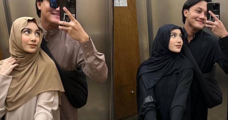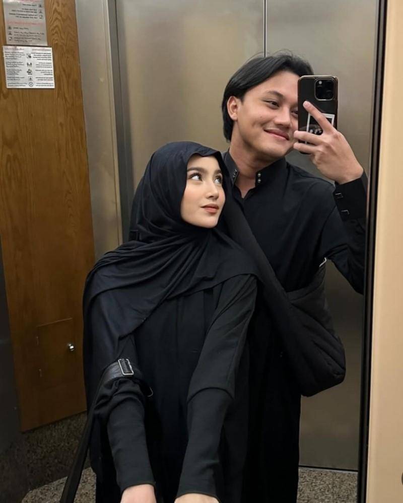 Di kesempatan lain, terlihat Mahalini dan Rizky mengenakan outfit senada yaitu serba hitam. Rizky mengenakan gamis hitam dan Mahalini abaya hitam polos dengan pashmina mleyot.