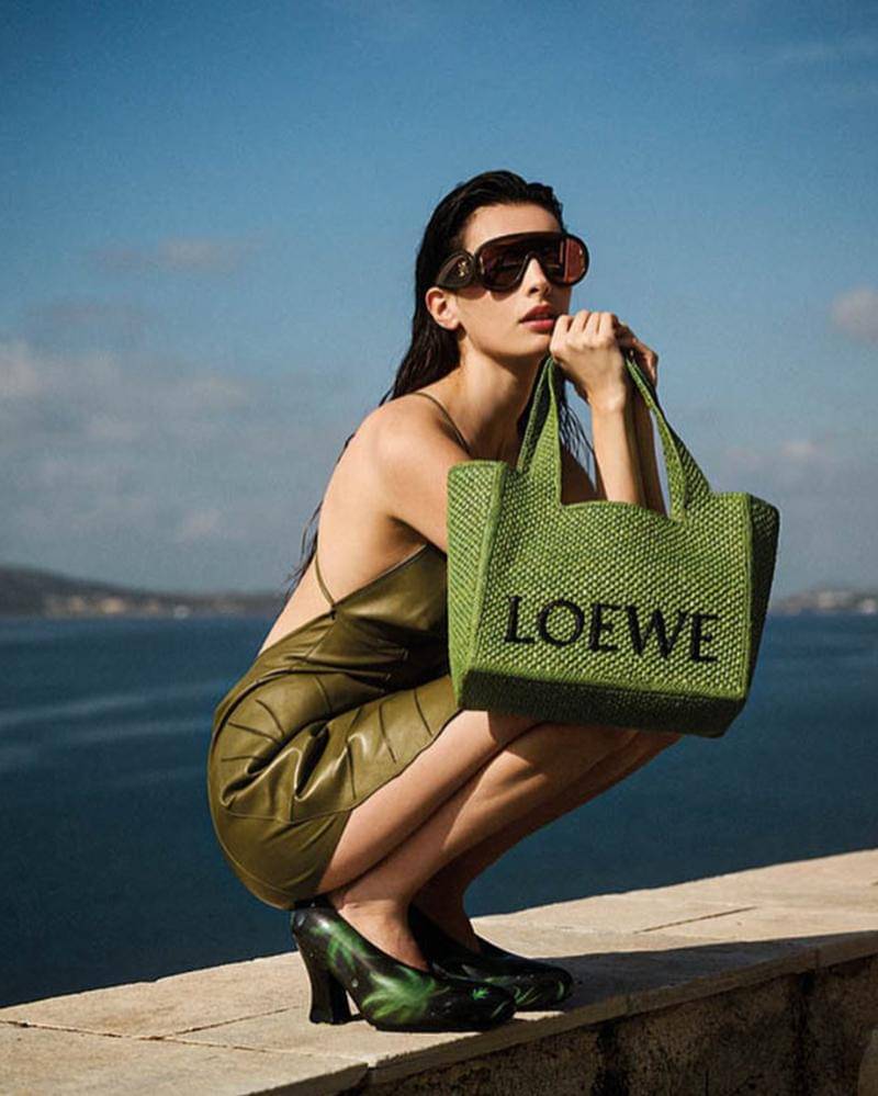 Selain itu, medium tote bag hijau yang ia pegang memberi kesan kasual pada pakaianny, karena ditenun dari tali rafia dengan ciri khas LOEWE. Sedangkan, mungkin mata Mama juga tertuju pada pump heels yang digunakan Tager. Memiliki bentuk yang unik, serta motif-motif pepohonan hijau, membuat sepatu ini terlihat menggemaskan. Penampilannya semakin lengkap dengan kacamata berlensa cokelat, dari LOEWE.