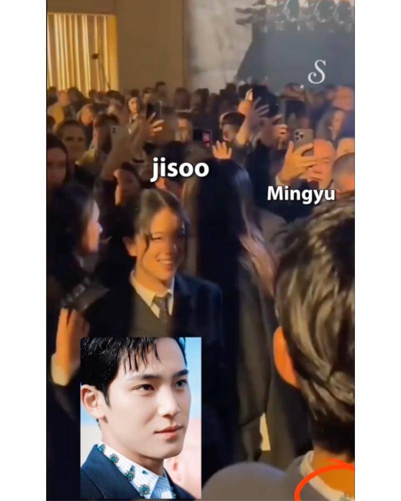 Jisoo dan Mingyu terlihat berada dalam satu frame, tapi sibuk dengan urusan masing-masing. Namun, ada pula video yang menunjukkan Jisoo yang tertawa melihat ke arah laki-laki, yang diduga Mingyu.