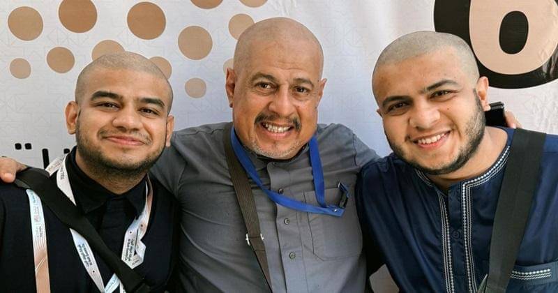 Ia pun menyempatkan diri untuk berfoto bertiga dengan kedua anak laki-lakinya. Banyak warganet yang mengatakan kalau Pak Muh yang paling tampan dibanding yang lainnya.