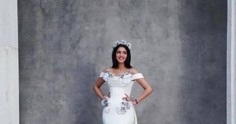 Dalam pemotretan pre wedding, Radhika terlihat playful dengan gaun putih dan detail bunga yang jadi headpiece-nya.