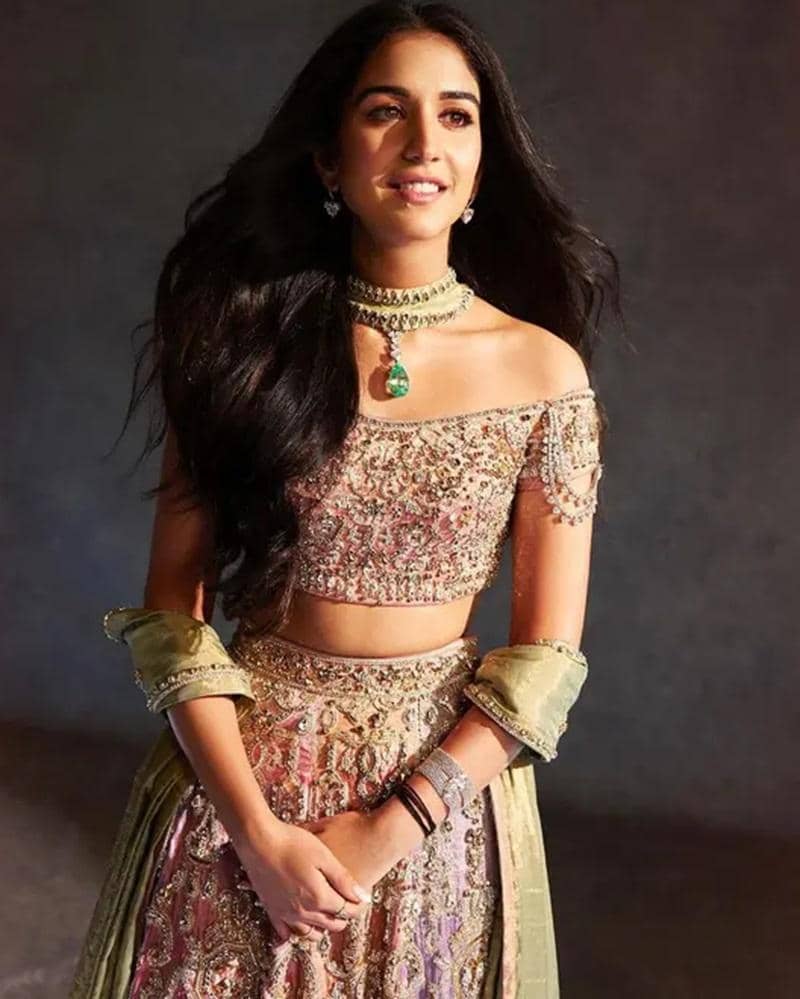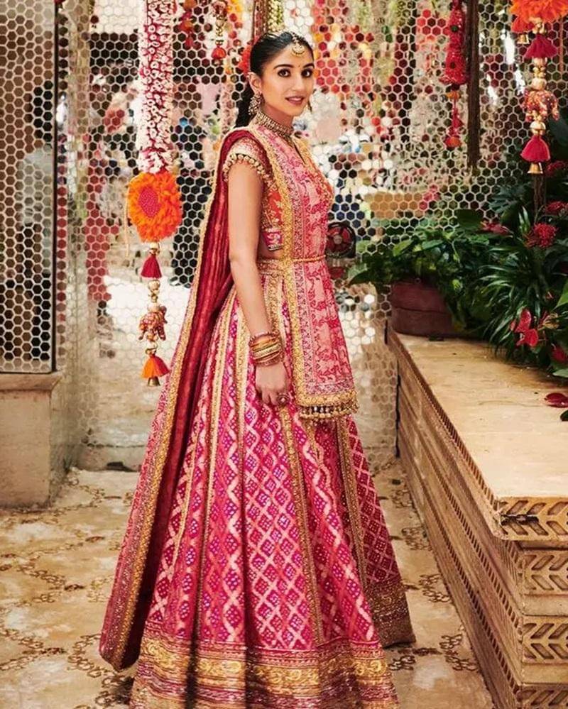 Dalam penampilan terbarunya, Radhika, calon istri Anant terlihat manis dengan outfit sari serta lehenga berwarna pink. Terlihat juga berbagai aksesoris pelengkap yang membuat penampilannya terlihat mewah.