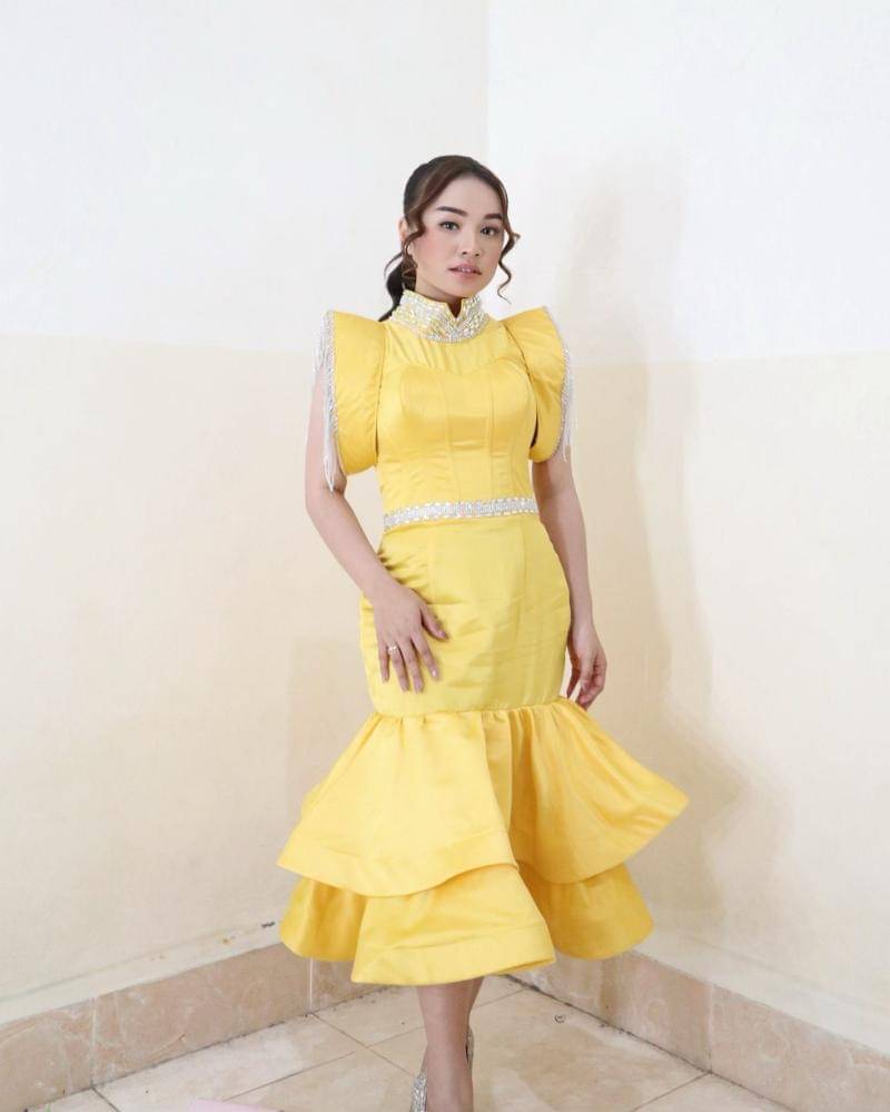 Tasya Rosmala tampil memukau dengan penampilannya yang anggun dalam dress duyung yang fitted, menonjolkan bentuk tubuhnya dengan sempurna. Bagian bawah dress yang merumbay memberikan sentuhan dramatis, menciptakan gerakan yang elegan saat ia melangkah.