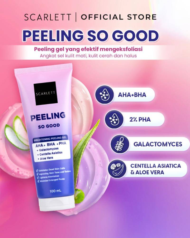 Tahun ini, Scarlett Whitening kembali berinovasi dengan mengeluarkan produk peeling gel. Mengandung AHA + BHA + PHA, produk ini dapat mengangkat sel-sel kulit mati pada wajah, sehingga kulit tampak lembut, bebas bakteri jerawat, halus dan bercahaya. Kandungan ini juga dapat mencerahkan dan meratakan warna kulit wajah, menyamarkan noda hitam pada wajah serta menyamarkan tanda-tanda penuaan, seperti garis halus dan kerutan.