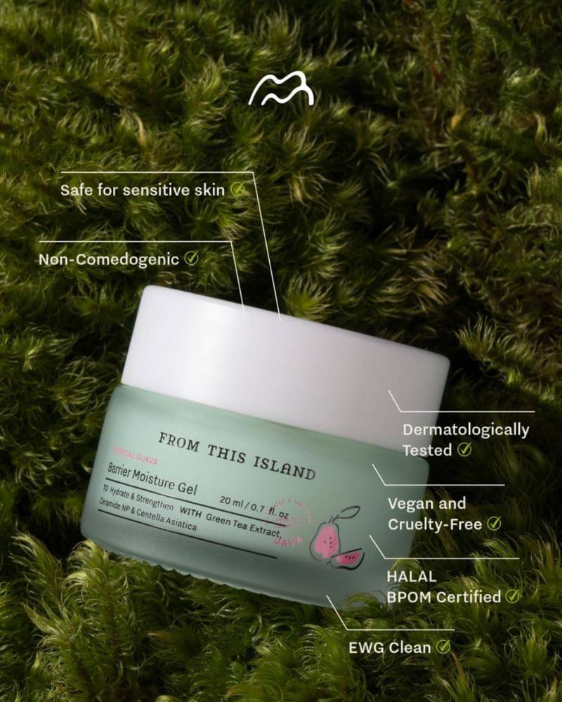 Salah satu produk yang diperkenalkan adalah pelembap wajah. Pelembap berbentuk gel yang satu ini dapat menghidrasi kulit, memperkuat skin barrier, menenangkan kulit yang kemerahan dan membantu mengatasi jerawat. Serta, diperkaya dengan hero ingredients berupa Tropical Guava Extract, Green Tea Extract, Ceramide NP Solution dan Cica Extract.