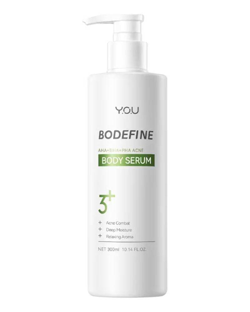 Bodefine Body Serum dari YOU terutama varian AHA+BHA+PHA Acne Body Serum menawarkan solusi untuk masalah kulit tidak merata dan kusam. Memiliki aroma yang tahan lama, body serum ini cocok untuk digunakan dalam aktivitas sehari-hari.