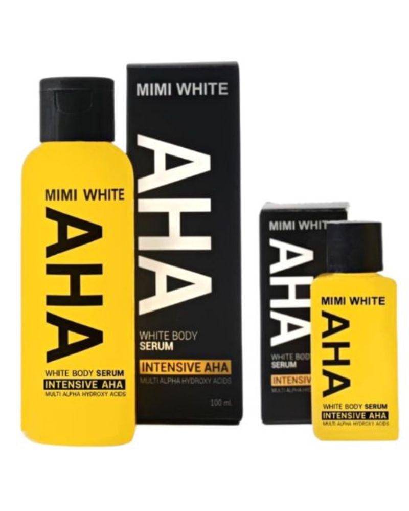 - Mimi White AHA White Body Serum bersifat eksfoliatif dan mengangkat sel-sel kulit mati serta mencerahkan kulit dengan harga Rp 35.000.
