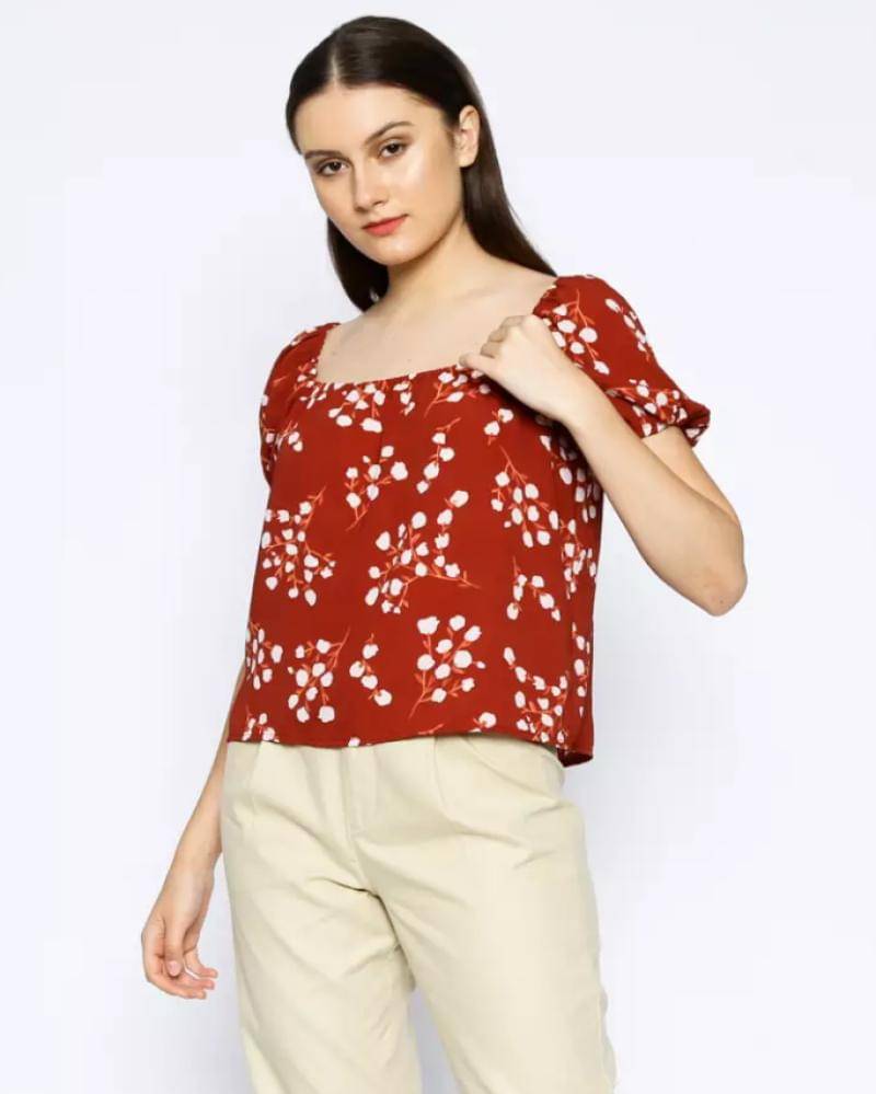 Potongan dada yang square memberikan kesan yang feminin. Harga atasan ini adalah Rp 52.000.