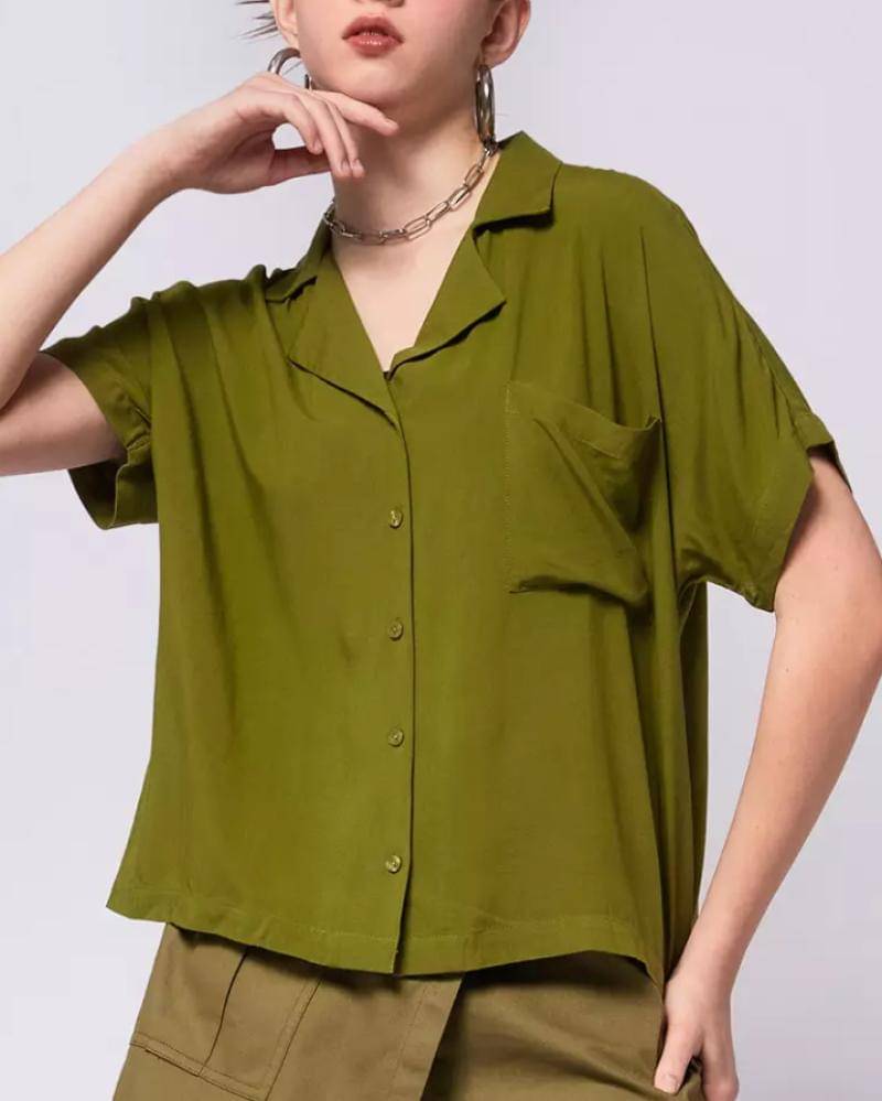 5. Colorbox Notch Collar Short Sleeve Blouse