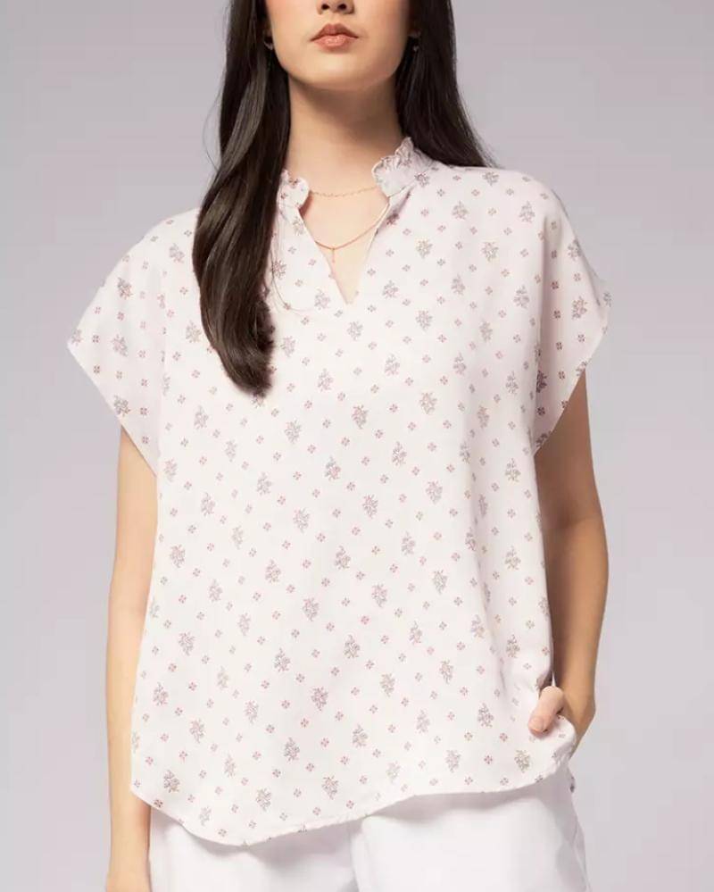 6. Executive Printed Crinkle Ruffle Neck Blouse