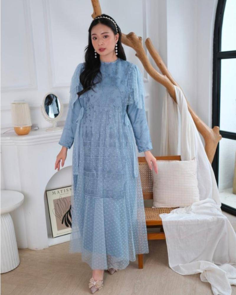 Kalau kamu ingin tampil mewah, Shazia dress bisa jadi opsi yang tepat. Terbuat dari bahan-bahan berkualitas seperti, tile bordir, tile dot, dan inner satin velvet. Mama akan terlihat sangat elegan.