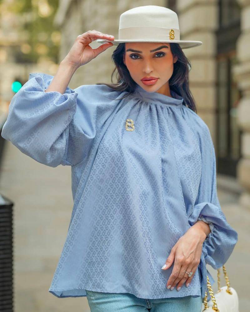 Kalau kamu ingin terlihat berbeda tahun ini, kamu juga bisa tampil dengan atasan, nih. Hadir dengan warna biru yang elok, kamu bisa terlihat chic dengan kemeja berlengan gelembung ini.
