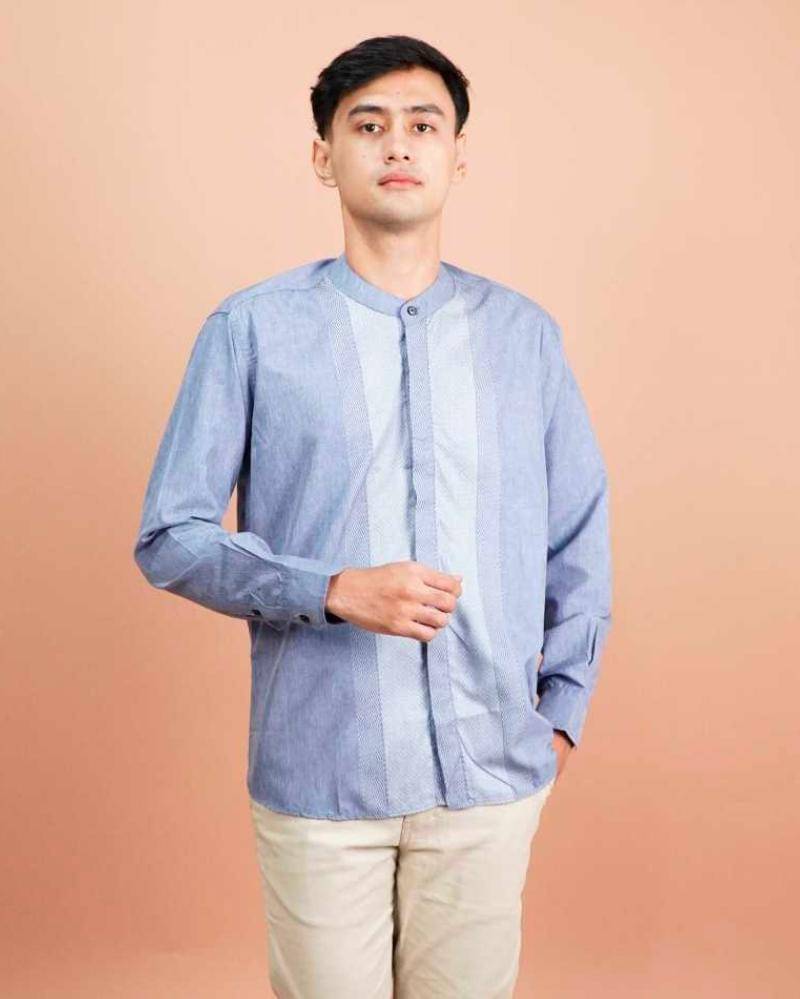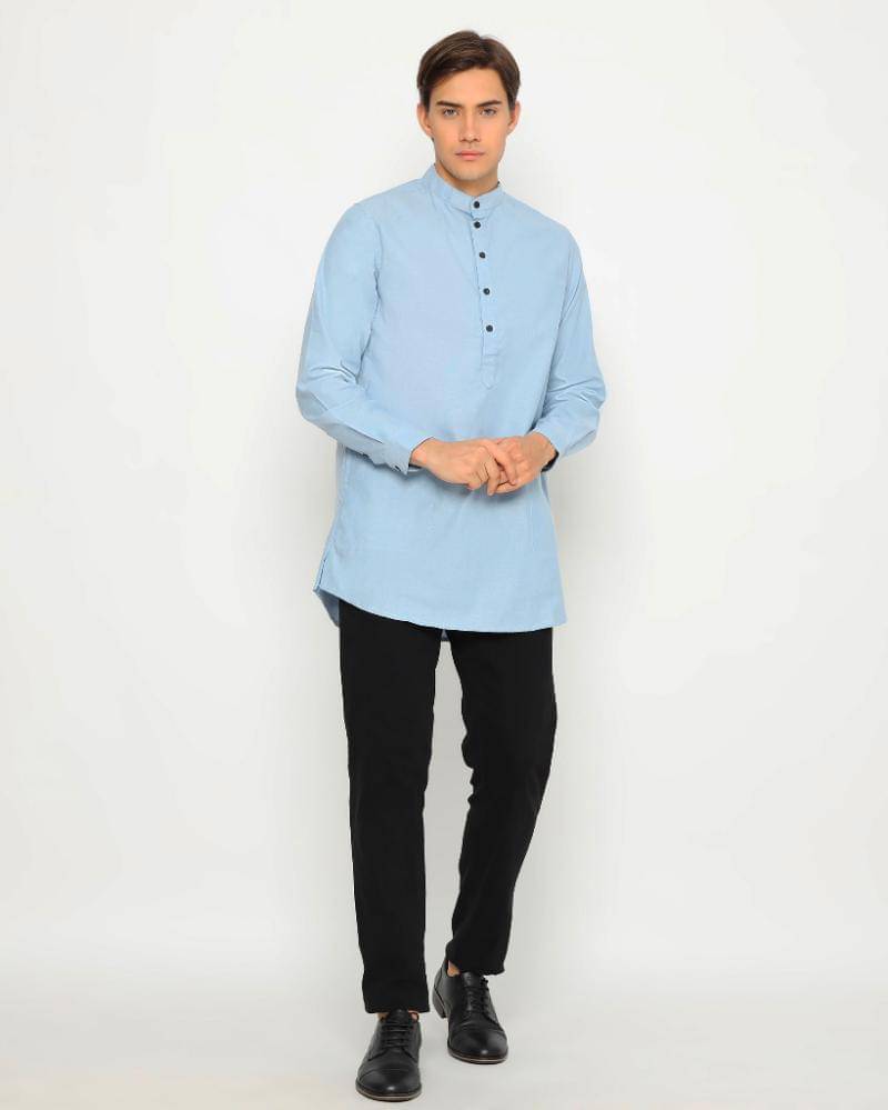 Koko berwarna biru muda akan sangat cocok dengan tren warna baju lebaran, tahun ini. Hadir dengan desain kasual yang cocok untuk berbagai aktivitas. Warna biru muda akan memberikan kesan fresh dan tenang. Sementara, pola di bagian tengah kemeja menambah kesan unik.