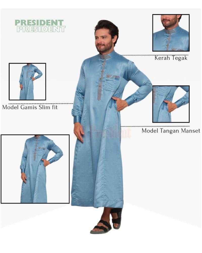 Untuk Papa yang lebih suka menggunakan gamis, kamu bisa banget cek gaya yang satu ini. Kamu bisa tampil stylish di hari raya nanti dengan gamis bermodel simpel dan elegan. Dibuat dengan gaya slim fit agar mengikuti bentuk tubuh.
