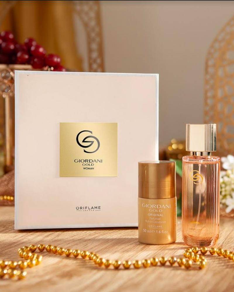 Berikan sentuhan istimewa bagi perempuan inspiratif di hidupmu dengan Modest Glamour Set. Set eksklusif ini hadir dalam kotak berdesain elegan, berisi Giordani Gold Woman eau de Parfum dan Giordani Gold Original Perfumed Roll-on Deodorant. Perpaduan sempurna ini menghadirkan aroma mewah yang intens dan tahan lama.