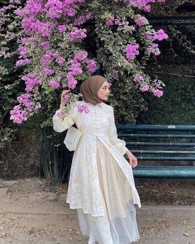 Tinggal tambahkan hijab yang senada atau berwarna lebih gelap agar terlihat makin memesona.