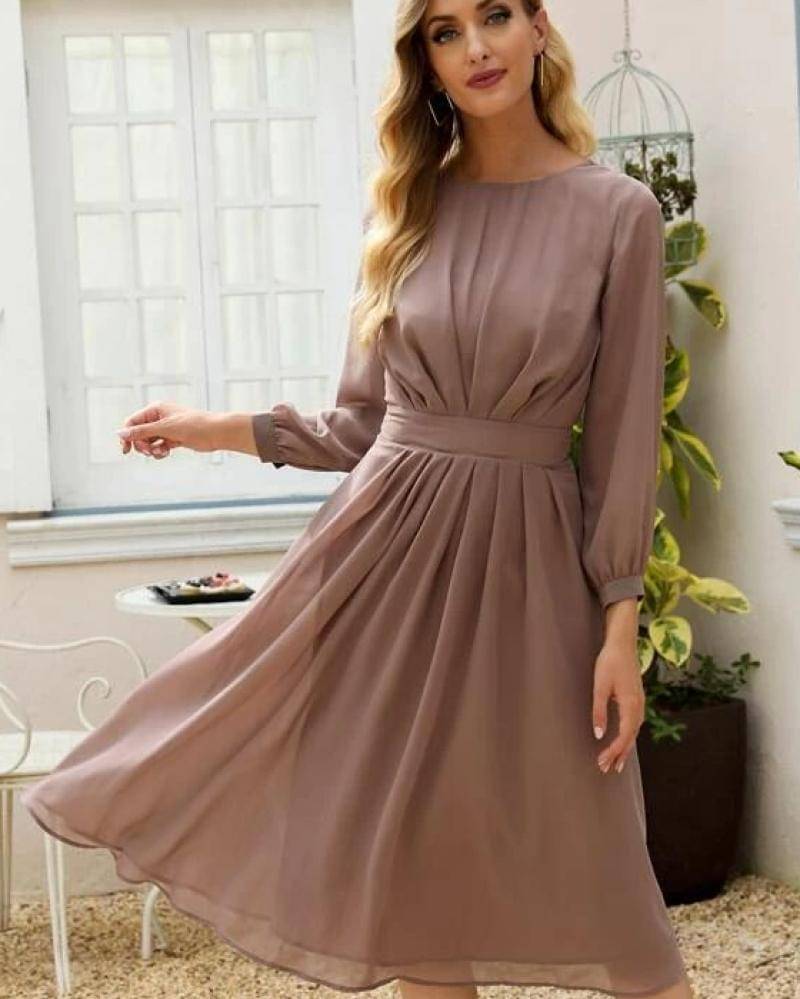 Dress pertama yang harus Mama punya adalah dress berwarna cokelat polos. Dress seperti ini cocok untuk dipakai saat acara formal, seperti pesta pernikahan, acara keluarga, atau Natal.