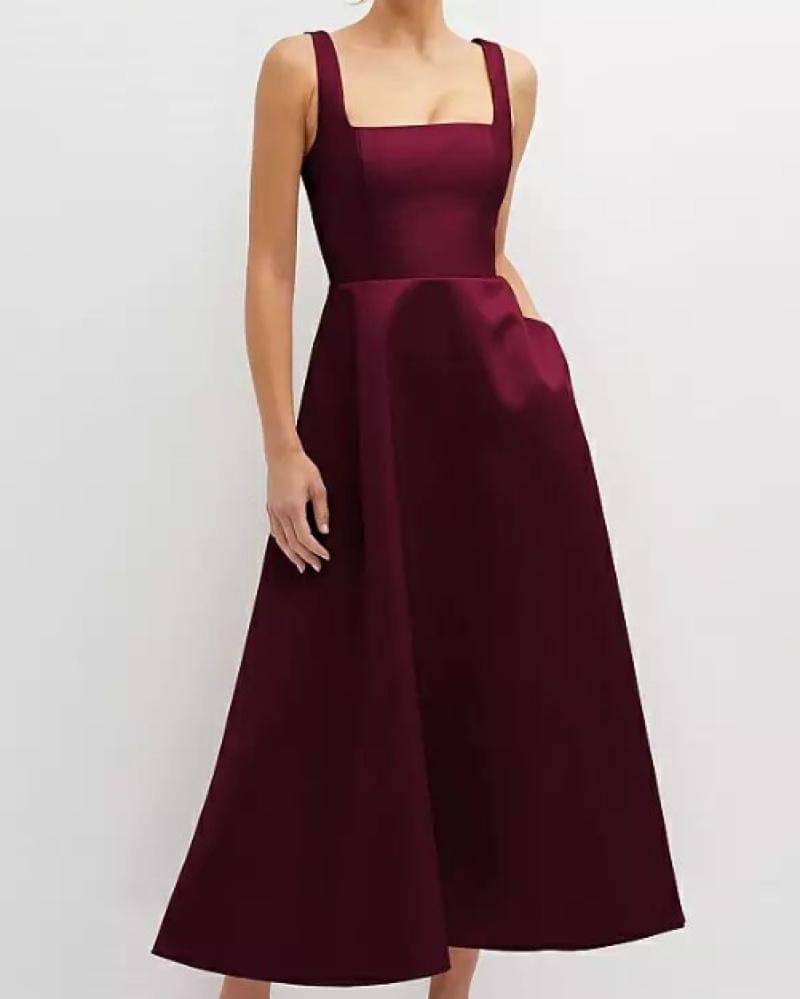 Dress berwarna merah dan turunannya, termasuk burgundy memberikan kesan yang mewah dan elegan. Dengan pilihan bahan yang tepat, penampilan Mama bisa terlihat glamor hanya dengan mengenakan dress saja.