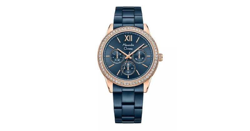 Dengan dial berwarna biru dan strap stainless steel berwarna senada, jam tangan ini cocok untuk Mama yang ingin tampil stylish dan fungsional.