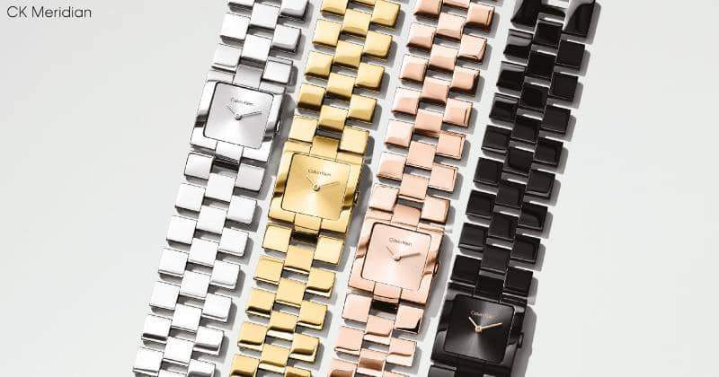 Dengan "case" berbentuk persegi yang unik dan gelang berbentuk kisi yang terinspirasi dari perhiasan, CK Meridian memberikan kesan tegas dan mencolok.