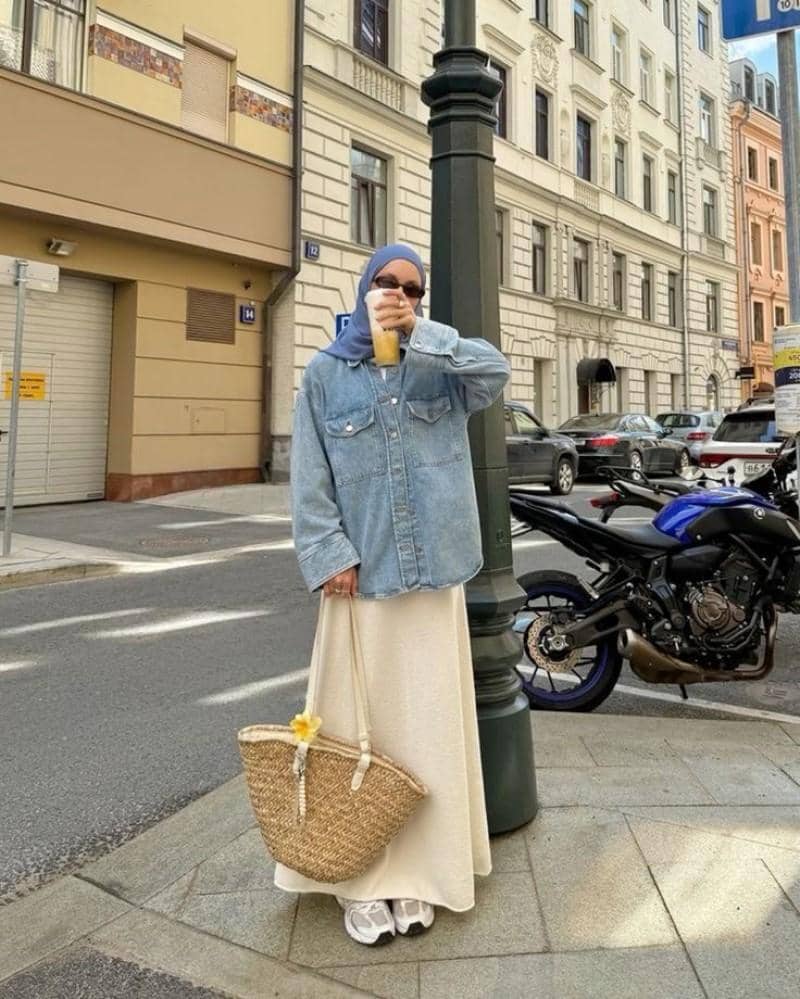 Mama yang berencana tampil santai dan kasual, bisa mencoba gaya yang satu ini. Pilih atasan jeans seperti kemeja jeans oversized atau outer jeans dan dipadukan dengan bawahan yang loose.