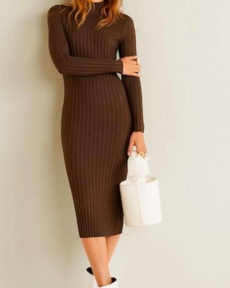 Untuk kesan yang elegan dan seksi, Mama bisa memilih dress ribbed atau knitted seperti ini. Bahan yang fit body memberikan kesan seksi dan warna yang tepat memberikan kesan yang glamor.