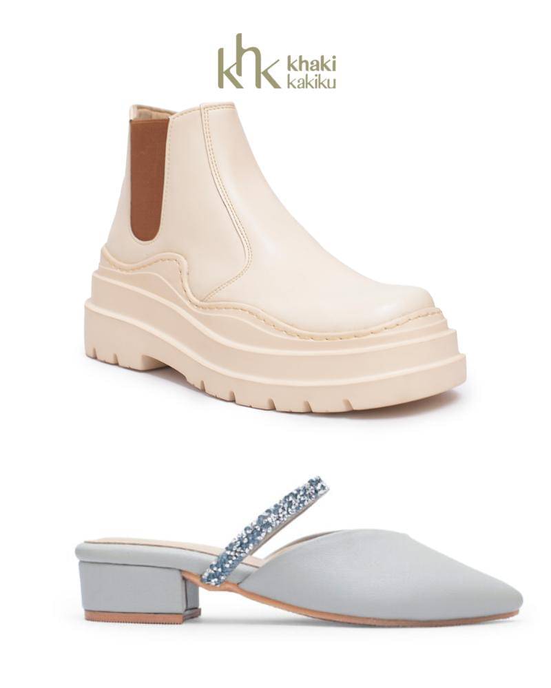 Sepatu yang ditawarkan pun sangat beragam, mulai dari boots, flats, flip flops, heels, sampai dengan mules, sneakers dan wedges. Untuk kamu yang senang mencoba berbagai gaya sepatu, Khakikakiku bisa jadi opsi, nih.