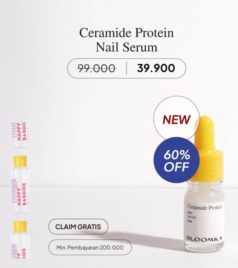 Dengan harga Rp 39.900, produk Bloomkan Ceramide Protein Nail Serum menyediakan perawatan yang komprehensif untuk kesehatan kuku.
