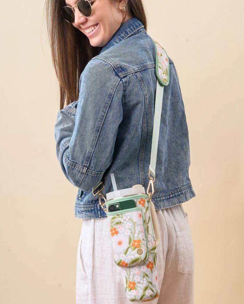Tas tumbler yang selanjutnya ada dari The Darling Effect. Tas tumbler yang ini bisa muat untuk tumbler ukuran 40 oz dan memiliki kantong terbuka untuk ponsel atau kunci.