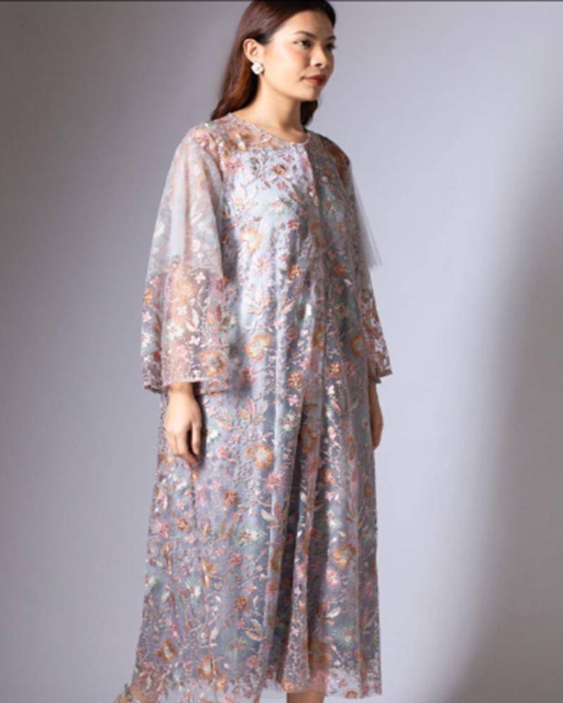 Yang pertama adalah tunik brokat lengan panjang yang roknya cukup panjang. Tunik ini sudah termasuk inner sehingga Mama tak perlu ada tambahan pakaian lagi.