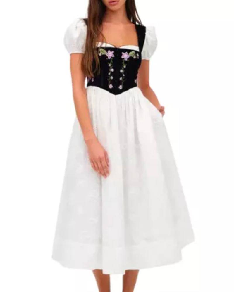 Milkmaid dress pada dasarnya adalah rok musim panas semilir dengan atasan pas yang terlihat seperti korset, serta garis leher yang rendah, dan rok yang menjuntai dalam bentuk A-line. Gaya kuno ini sangat mudah beradaptasi, jadi Mama mudah untuk memadupadankannya.