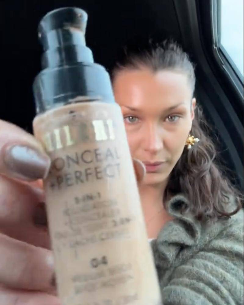 Hadid kemudian menggunakan Conceal + Perfect Foundation dan Concealer dari Milani (yang dibelinya di CVS dengan harga di bawah $10 atau sekitar Rp 164 ribu). Ia mengoleskan sedikit ke pipinya dan membaurkannya dengan kuas untuk meratakan warna kulitnya.