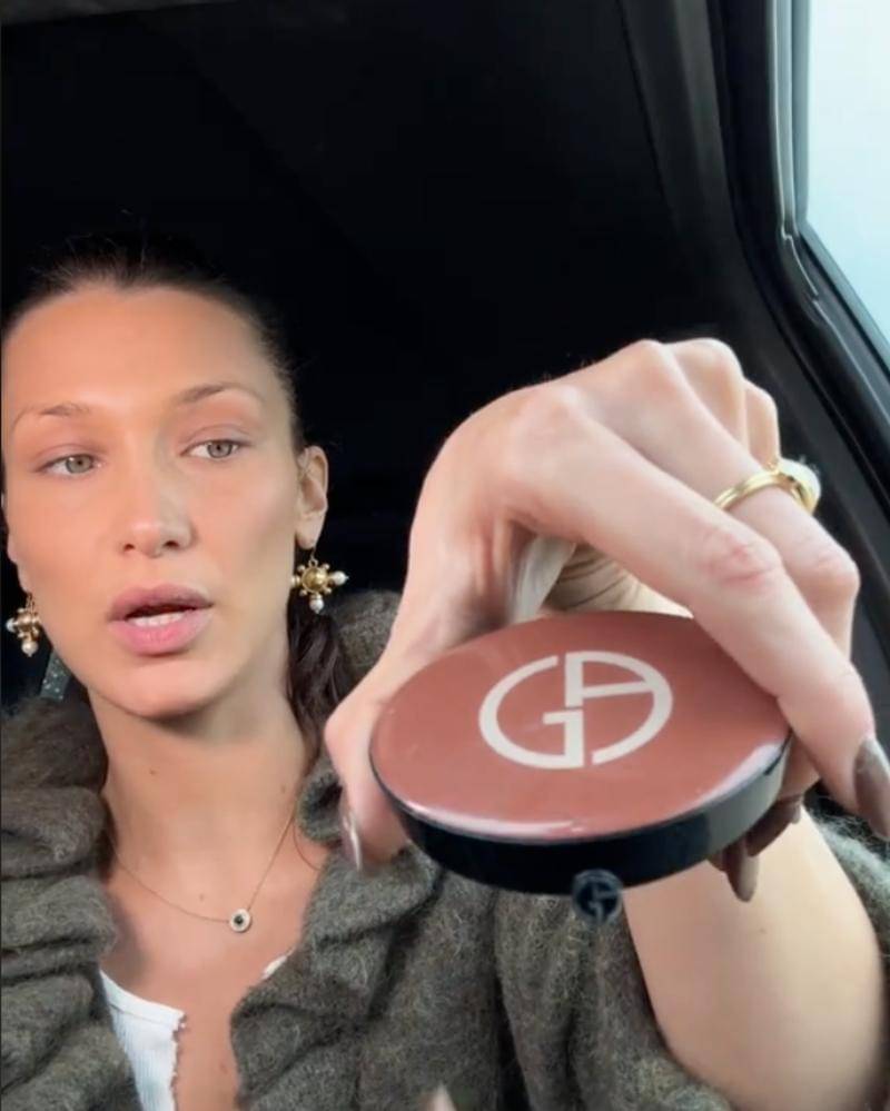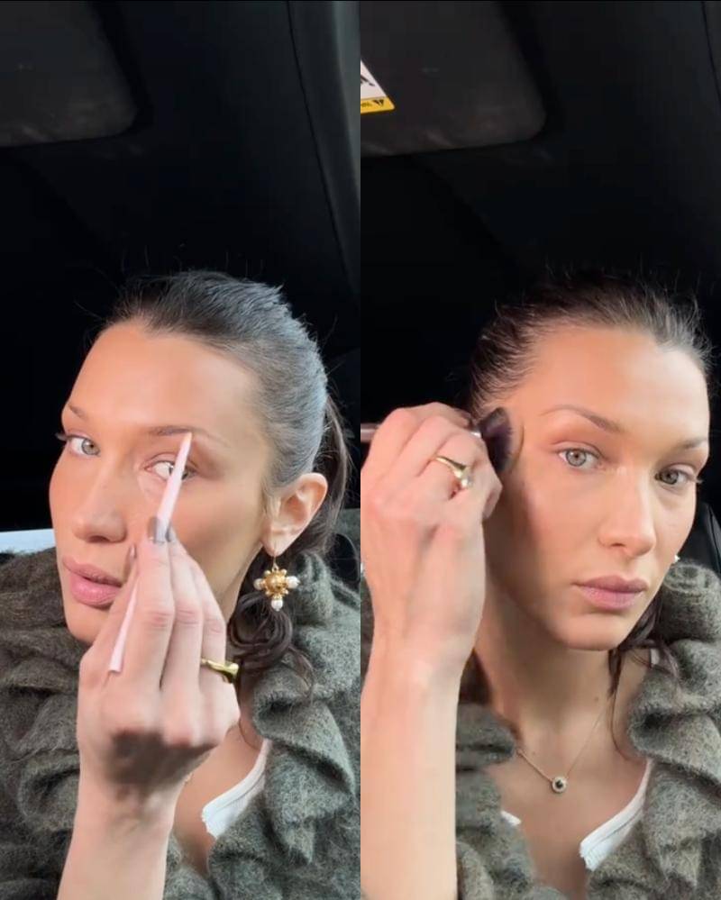 Ia kemudian bertanya, kepada para penonton, apakah tampilannya berhasil? Meskipun para penggemar juga tahu kalau Bella sudah tampak memukau. Hadid turut mengaplikasikan Luminous Silk Creamy Bronzing Powder dari Armani Beauty untuk menambah kehangatan pada kulitnya sebelum fokus pada alisnya.
