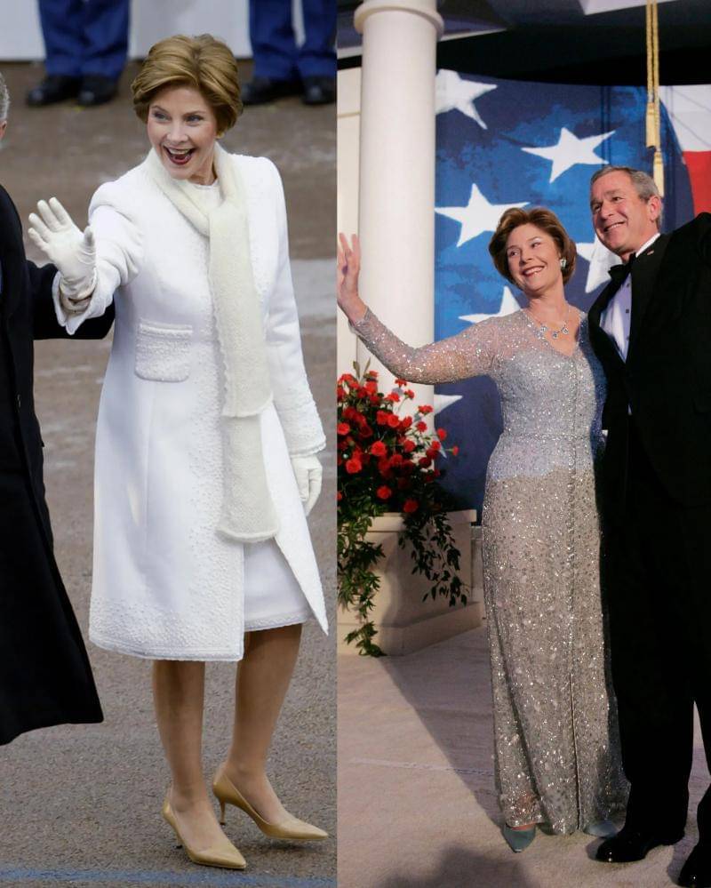 Pada pelantikan kedua George W. Bush pada tahun 2005, Laura Bush menunjuk Oscar de la Renta untuk mendesain busananya. Untuk upacara pelantikan, ia mengenakan coat dengan gaun kasmir putih musim dingin yang anggun.