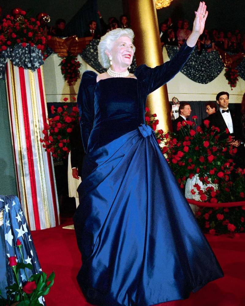 Mengikuti gaya Nancy Reagan, gaya pribadi Barbara Bush lebih bersahaja, mencerminkan sifatnya yang membumi dan praktis. Pada pelantikan George H. W. Bush tahun 1989, untuk pesta malam itu, Barbara mengenakan gaun biru kerajaan yang memukau rancangan Arnold Scaasi.